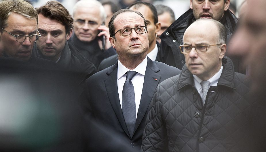 El presidente francés Francois Hollande se presentó en el lugar inmediatamente, habló de un ataque terrorista y prometió perseguir a los culpables. Se reunió, entre otros, con el ministro del Interior, que ordenó la fortificación de la ciudad y elevó al máximo los niveles de alerta, y con el ministro de Relaciones Exteriores, Laurent Fabius, que ya en 2011 había manifestado su apoyo a «Charlie Hebdo», afirmando que la libertad de expresión era un valor caro para los franceses. La comunidad islámica reaccionó rápidamente en contra. El imán de Drancy se preguntaba, «¿qué profeta ha sido vengado? son criminales, bárbaros (…), no tenemos el mismo profeta, no es el profeta del Islam, no es el Islam como lo conocemos en Francia». El rector de la mezquita de Bordeaux llamó a los musulmanes a salir a las calles y el líder musulmán Mohammed Moussaoui lamentó que la religión sea instrumentalizada para exacerbar tensiones en la población. Lamentablemente, pagarán justos por pecadores, porque esto traerá una ola de odio o cuanto menos temor en Europa hacia los musulmanes.